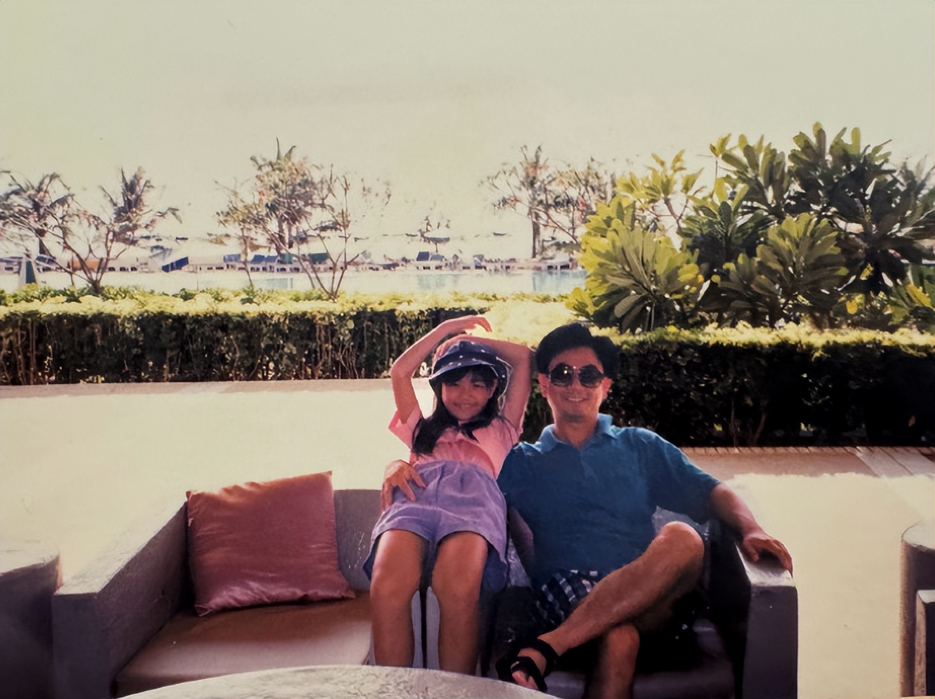 这张照片是陈妍希4岁的时候,一家人去海边玩耍,小小的陈妍希跟在爸爸身边,软萌又可爱。