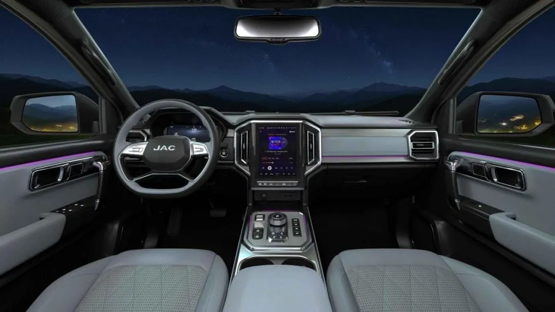 内饰设计方面,江淮悍途PHEV采用全新蓝灰内饰,搭配大面积的软包材质和64色律动氛围灯,营造出优异的豪华感。另外,江淮悍途PHEV配备10.25英寸液晶仪表+10.4英寸中控大屏,带来出色的科技氛围,并且还搭载最新一代J-LINK智聆3.0车机系统和高通8核处理器,算力较燃油车型提升2.5倍,使用更流畅。