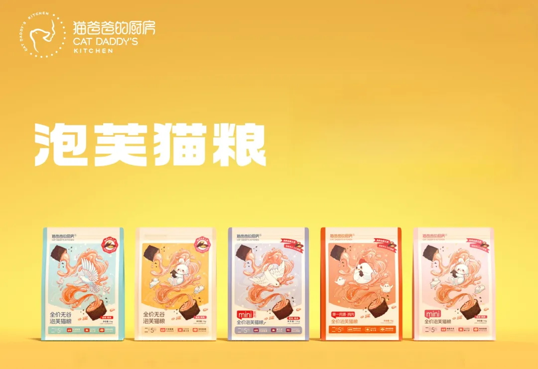 这个数据在新兴的泡芙粮品类中尤为亮眼 —— 目前泡芙粮市场渗透率仍不高,且部分新兴品牌质量参差不齐,但猫爸爸的厨房能凭借十年积累和工艺优势占据市场主导,侧面说明“可视化肉感”“健康配方”的产品,正精准匹配当下宠物“精细化喂养”的需求。