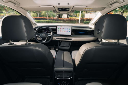 进入车内,新揽境采用10.25英寸仪表+15英寸中控屏+11.6英寸副驾屏的三联屏设计,内置高通8155芯片,车机运行流畅。内饰大面积采用真皮包裹和软质搪塑材料,搭配30色氛围灯和哈曼卡顿音响,营造出浓郁的豪华氛围。途昂则采用12英寸中控屏+10.2英寸仪表的组合,科技感稍显不足,且内饰用料多以硬塑料和仿皮为主,在质感上略逊揽境一筹。