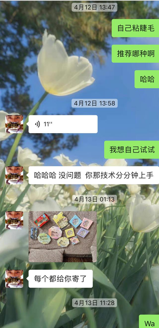 在评论区,张馨予还晒出了自己与老公何捷的私下聊天,可以看出在动手粘假睫毛之前,张馨予特意询问何捷推荐哪种款式,而暖心的何捷则一口气买了十余种睫毛寄给张馨予,宠妻姿态惹人欣羡。