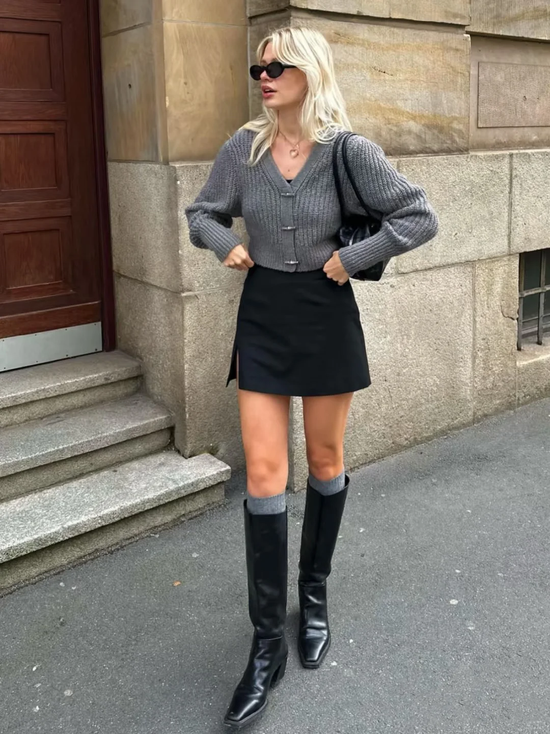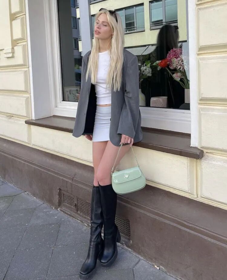膝下靴的靴筒长度能视觉延伸腿部线条,