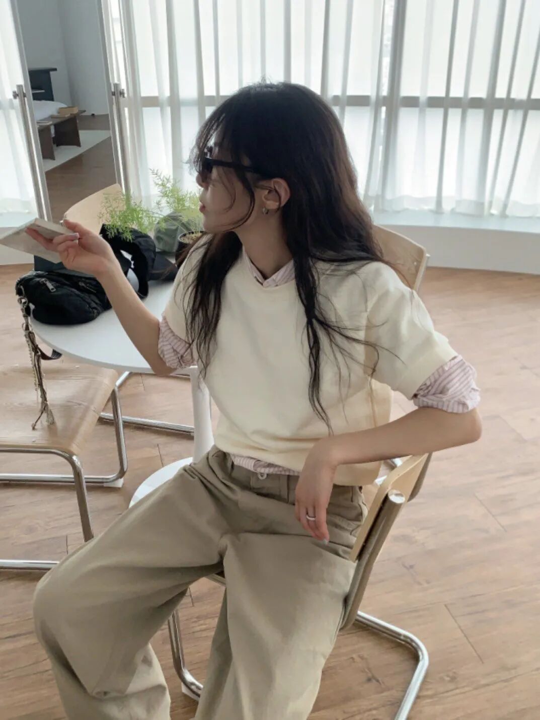 比如纯棉白 T 恤、垂坠感衬衫、A 字半身裙,
