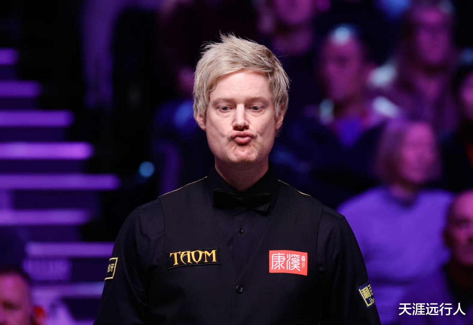 开场小庞先声夺人,第二局,萝卜两次上手,71-0第三局罗伯逊单杆打出58分取胜,第四局两人各有失误,罗伯逊拿下该局,3-1领先进入局休;休息回来罗伯逊打出破百,凑成五连鞭,眼看着吴宜泽遭遇六连鞭的悲情剧本就将重演。