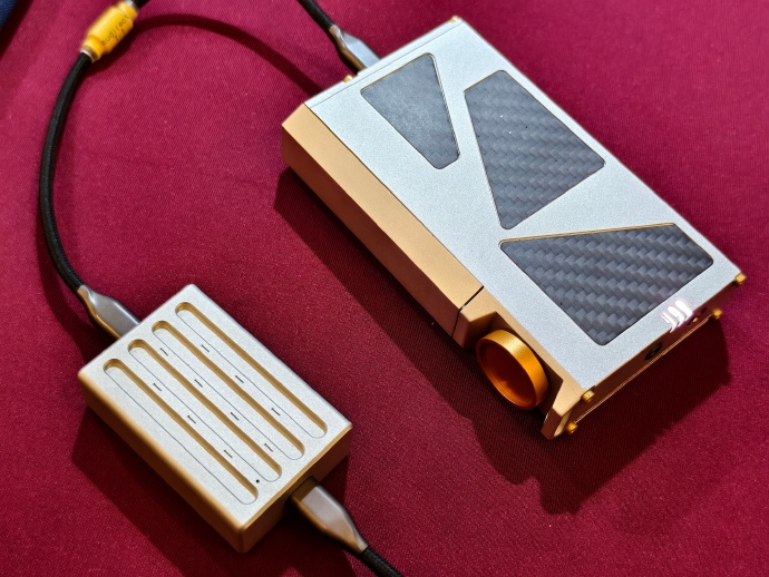 Audirect这次带来了两个新品,分别是一个USB净化器和一个带电子管的解码耳放,净化器本身不需要外部供电,可以支持正常的DSD硬解,售价为1260。接上小尾巴以后比较直观的提升在于纯净度、横向声场,结像的清晰度也会有更好的表现,不过不适合本身那种就比较数码味的设备,否则的话高频会有点锐。而这个净化器本质上其实是配套另一个解码耳放来使用的,XMOS+ESS9039Q2M,支持蓝牙,USB,光纤输入、也有LO,内置高达11个运放,带电子管,是目前Audirect品牌唯一的一个称得上宽松HuFi的设备,即便是晶体管耳放模式下也有很好的空气感,正好可以通过这个USB净化器来获得更清晰立体的结像,价格预计在5K左右。