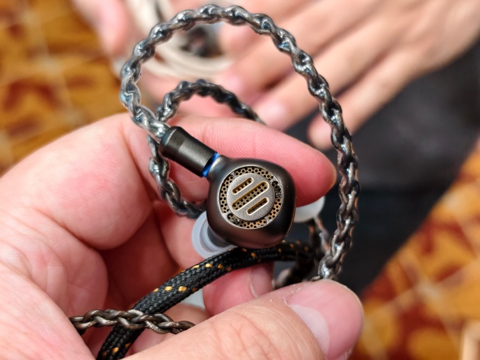 水月雨的一个新品工程机,代号“12铁”,不过并没有原配线,现场后来搭配了Nyx Net听了下,也可能是这根线的韵味侵略性太强,整体我听下来是个有点HuFi感的路子,声场依然是比较保守、没有什么刻意拉宽的痕迹,但结像是丰满的、两端延展也很完整,有点像是一个基于流星加热海升级线再拉素质、提升安定感后的一个风格,不过没原配线,我的话你也可以当扯淡......