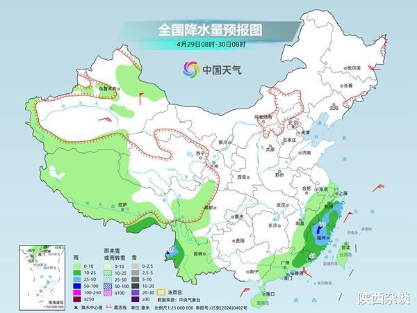 后天,新疆北疆北部阿勒泰山区局地有小雪或雨夹雪。浙江中南部、江西东部、福建、广东东部以及云南西部、西藏东南部等地部分地区有中到大雨,其中,福建西北部等地局地有暴雨。