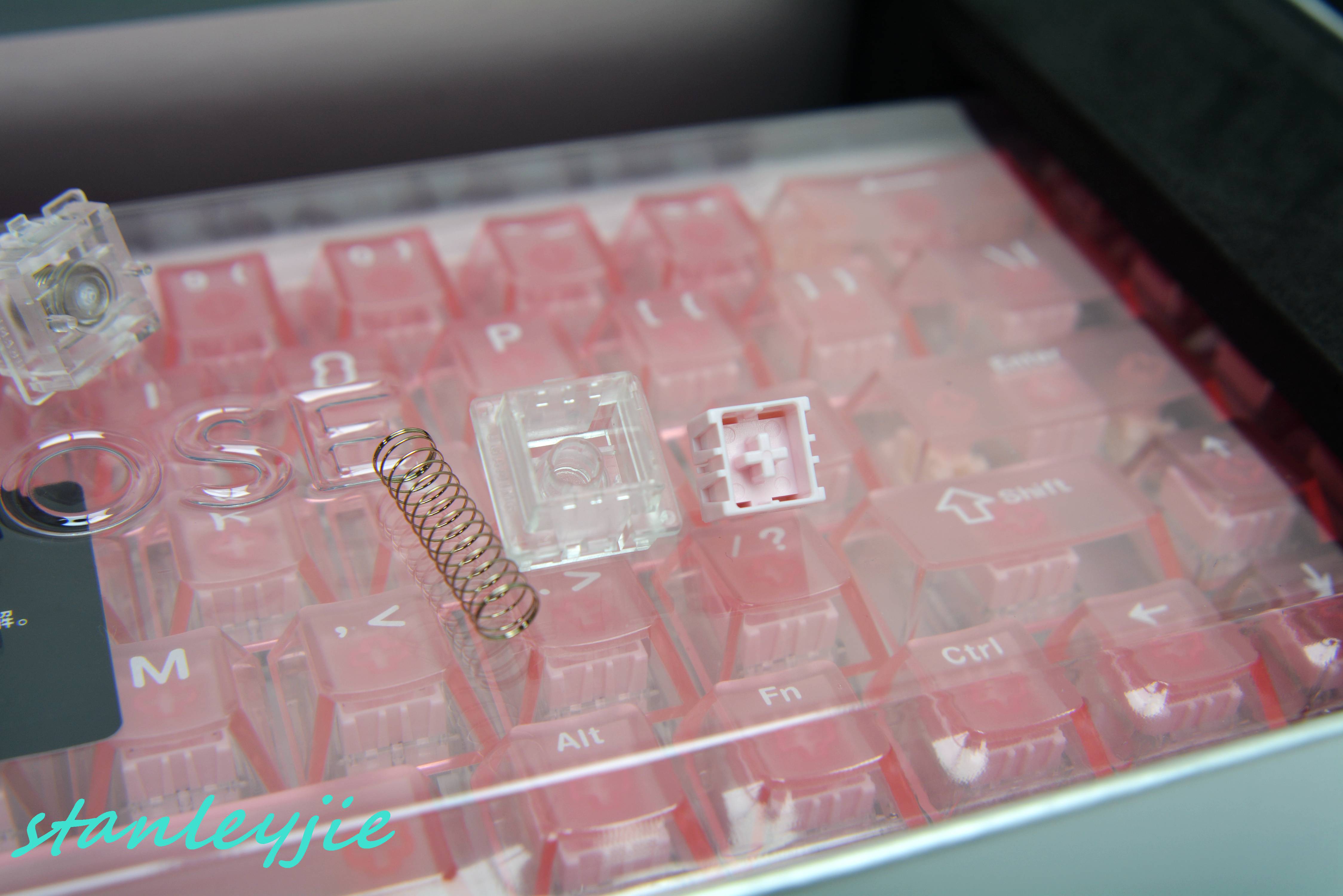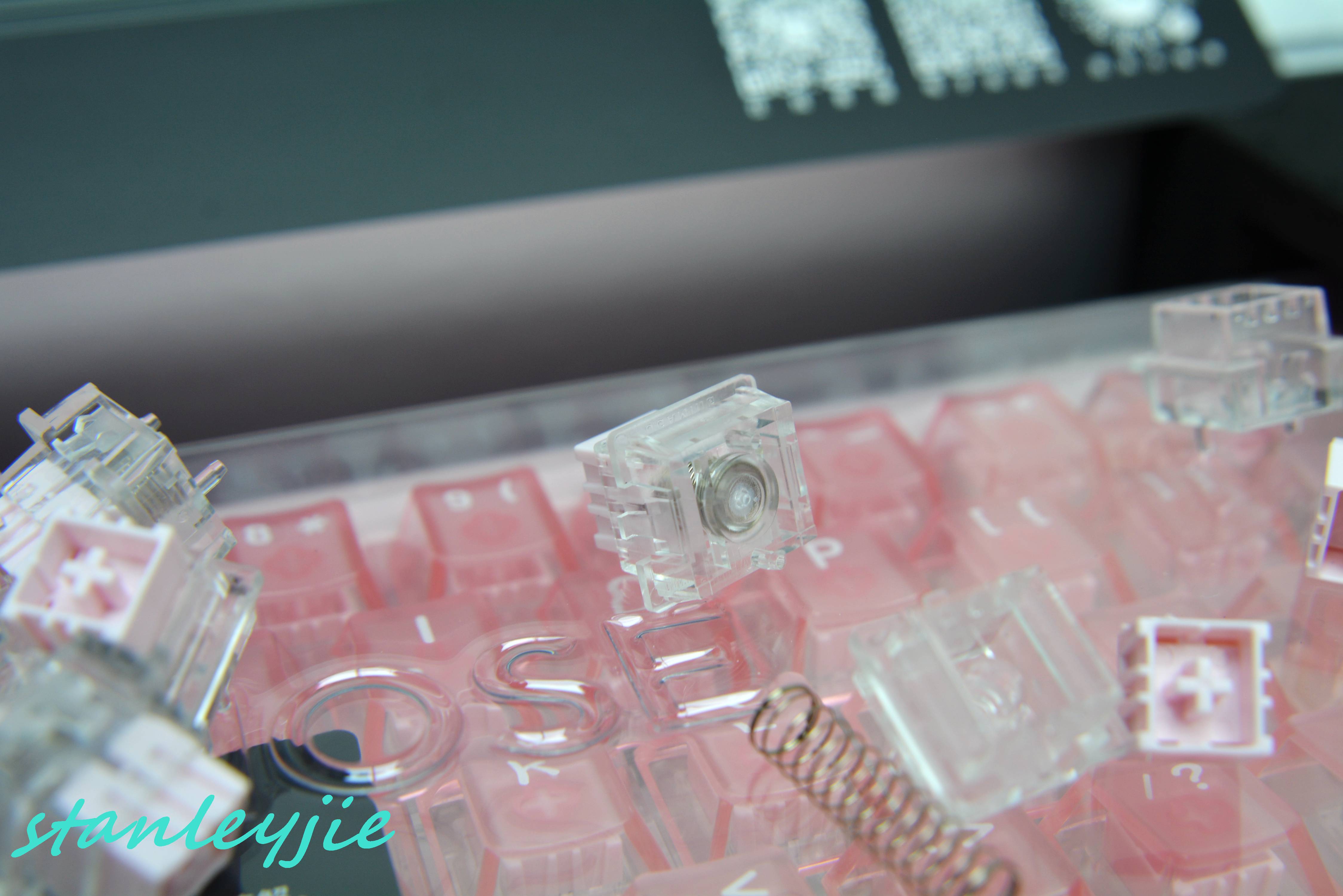 ☀6.粉泰山磁轴 GT是游众公司出品的一款轴体,在它之前还有一款泰山磁轴,寓意大概是稳如泰山。这两款轴体并不存在升级迭代关系,而是不同的两款产品,泰山磁轴GT偏向专业游戏,粉泰山GT则全能。不过我保持我一贯的观点,键盘的本质是输入,不存在专门给游戏或者专门给办公,重点是看手感适不适合自己,有兴趣的玩家可以自行选购。