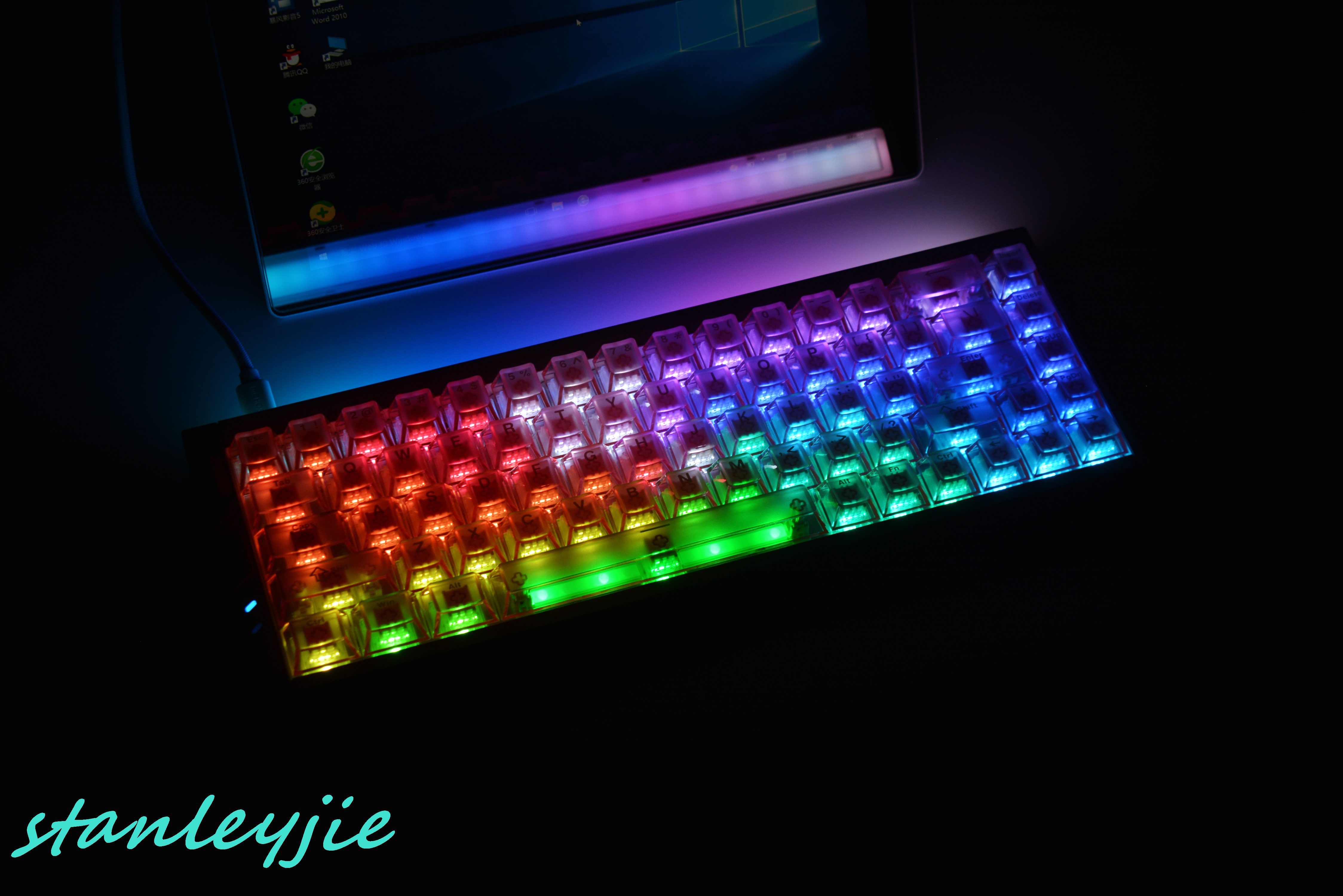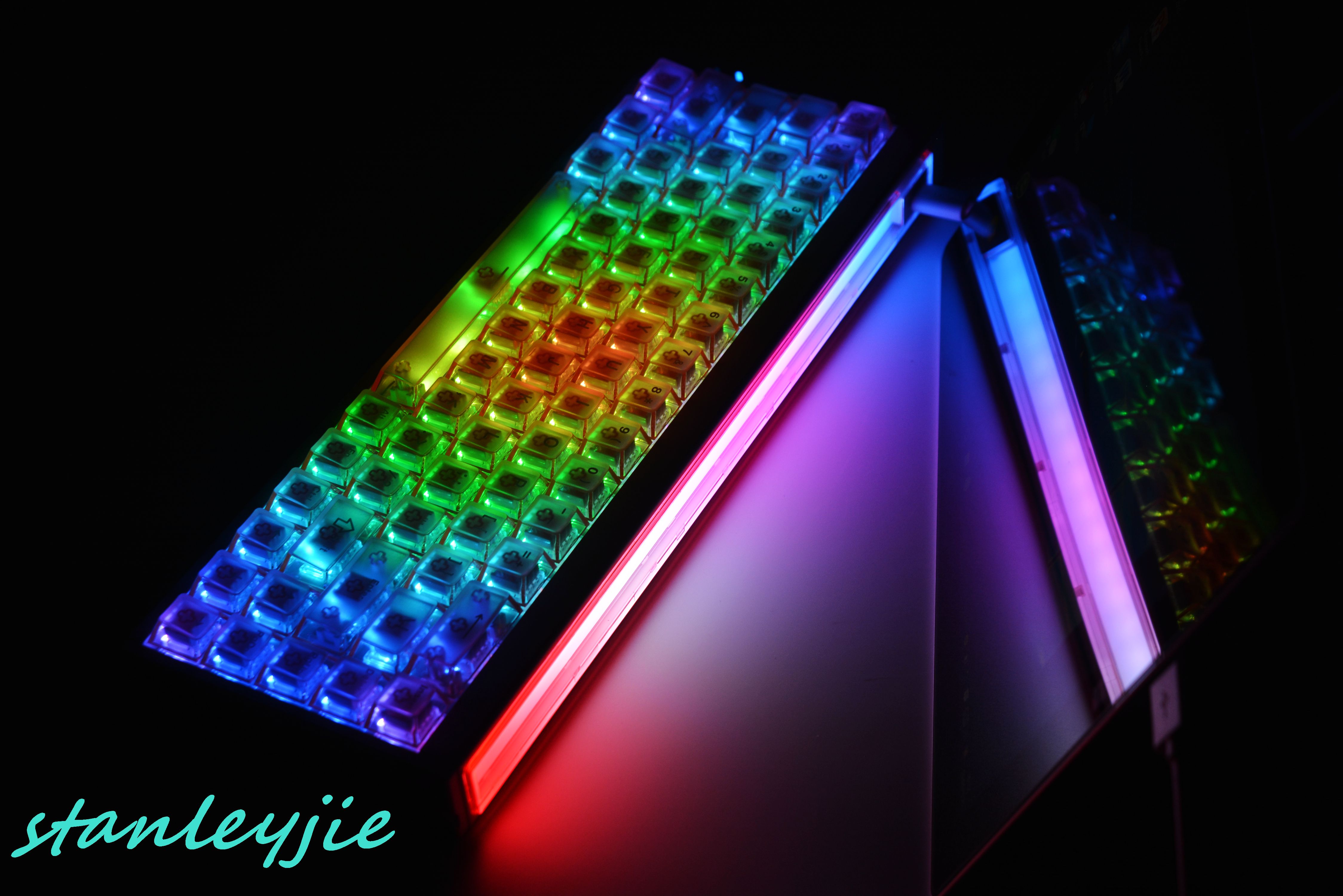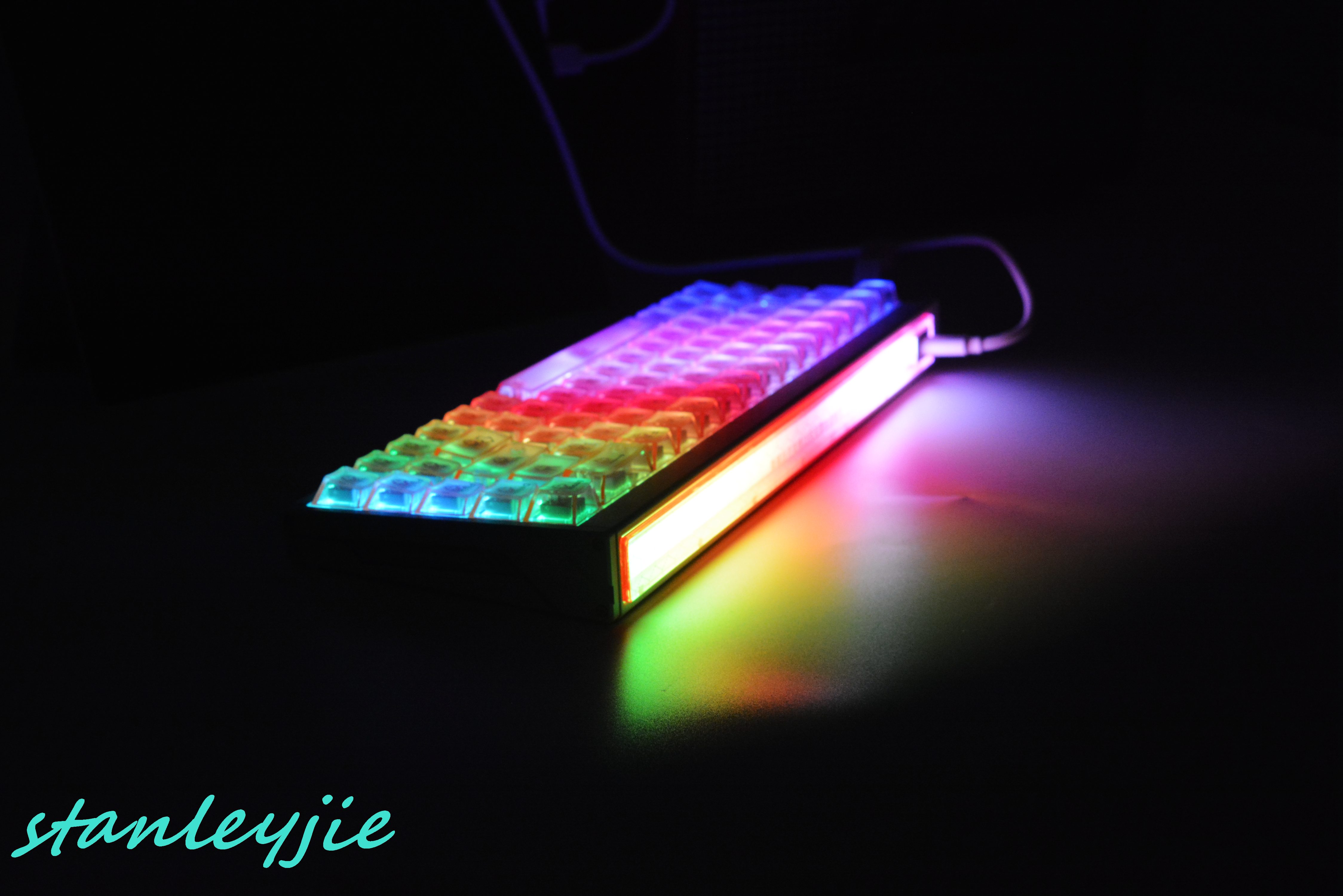 ☀4.键盘的 RGB 背光系统在视觉呈现与功能多样性上有较好表现。雾透键帽与全透明侧边的设计,减少了光线传播过程中的遮挡,搭配顶部通透灯箱,夜间点亮后整体亮度充足,光影分布均匀,色彩呈现丰富;