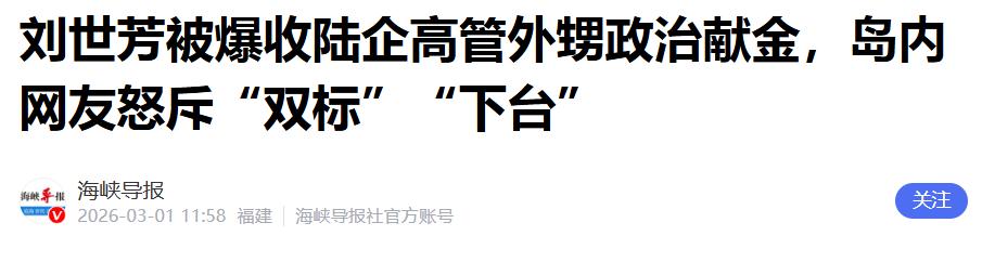 刘世芳被爆收陆企高管外甥政治献金,岛内网友怒斥“双标”“下台”——海峡导报