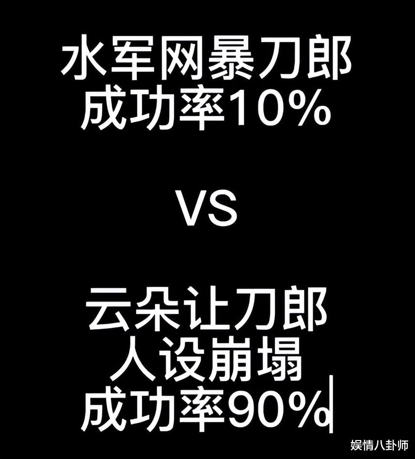 他给出的理由是,刀郎已经被刀迷们神话了,经不起一点黑;而云朵则不同,她并不是德艺双馨的歌唱艺术家,所以越黑越干净,根本不会被毁掉。这种言论,不仅缺乏逻辑支撑,更显得对刀郎和云朵都极不公平。