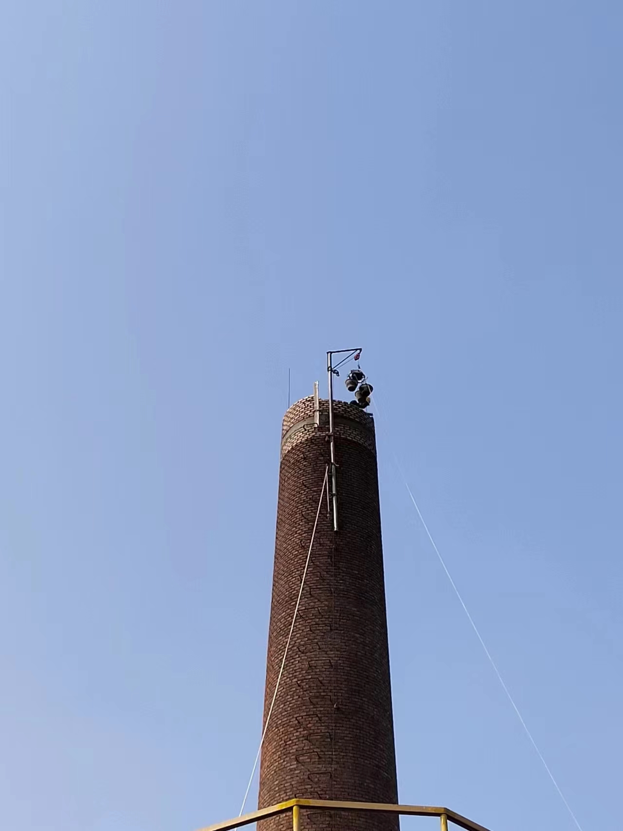 高空砌筑精度控制难:加高段砌筑高度达 17m,高空作业吊篮受风力影响易晃动,筒身垂直度与圆度难把控,偏差累积会影响整体结构稳定性。