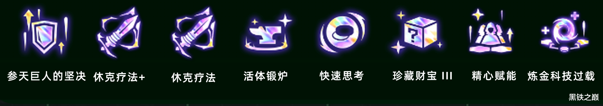 参天巨人的坚决、休克疗法+、休克疗法 、活体锻炉、快速思考、珍藏财宝III、精心赋能、炼金科技过载