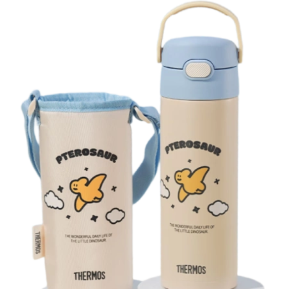 保温锁温实力在线,双层真空隔热设计,冬天能长效锁温,避免热水快速变凉;夏天装冰饮,大半天依旧清爽,适配不同季节需求。清新天蓝色搭配萌趣卡通图案,颜值戳中孩子喜好,开学背着去学校,既能满足饮水需求,又能成为校园里的小亮点,孩子也更愿意主动喝水。
