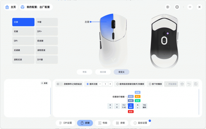 这次雷柏最新推出的 A Hub 整合驱动支持 Windows 和 macOS 双系统,界面简洁,功能强大。在驱动中,玩家可对鼠标的 DPI 进行设置,最多可设置 7 档,还能分别调整 XY 轴的 DPI。按键自定义功能十分丰富,不仅能对鼠标的 7 个按键和滚轮进行个性化设置,还支持组合键和宏功能。