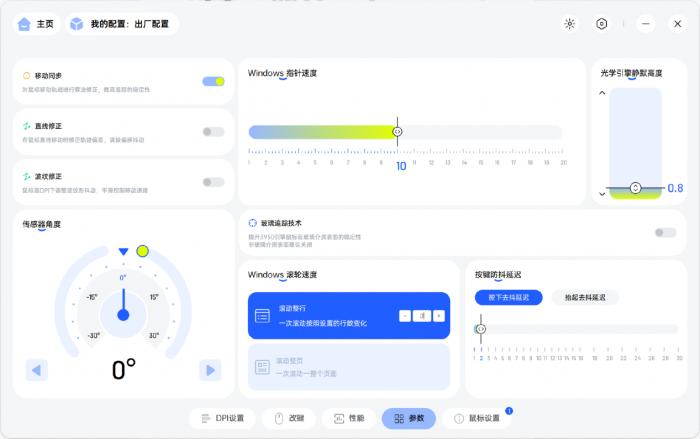 除此之外,还可以对鼠标的指针速度、滚轮速度、引擎静默高度、传感器角度进行自定义调节,雷柏甚至为了让你秒的更准,还加入了按键防抖延迟,无论按下去还是抬起均可以开启防抖功能,是不是有种开挂的感觉,使用VT7 Max时还可以开启玻璃追踪技术,提升3950引擎鼠标在玻璃介质表面的稳定性。