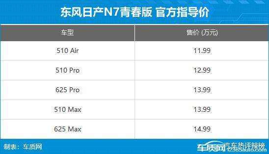 2月24日,东风日产N7青春版正式上市,共推出5款车型,官方售价11.99-14.99万元,上市限时价10.99-13.99万元。