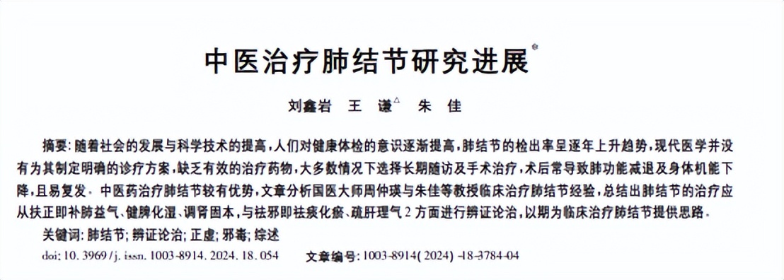 参考资料[1]郁文越,朱佳,张传名,等.肺结节的中医研究进展[J/OL].实用中医内科杂志,1-7[2024-09-30]
