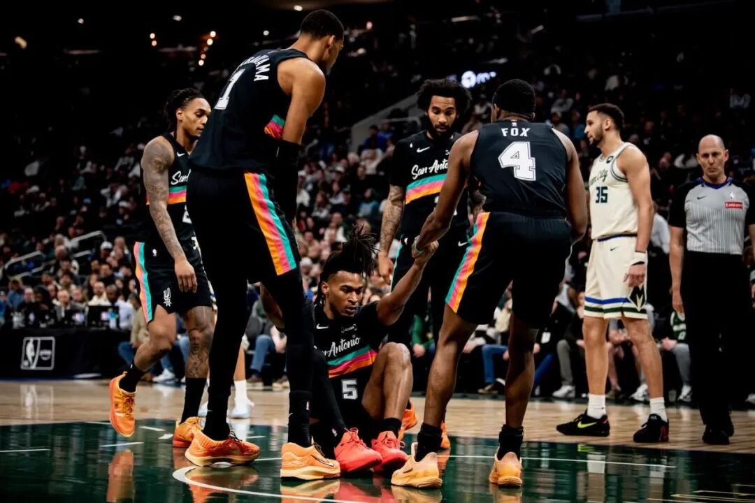 本赛季文班亚马缺席的17场比赛,马刺取得了12胜5负,其中在11-12月文班亚马受伤的12场比赛里,马刺全队足足有7人场均得分上双,包括福克斯(25.2分)、卡斯尔(只打了3场,17.3分)、瓦塞尔(17.2分)、巴恩斯(15.6分)、凯尔登(15.4分)、尚帕尼(13.2分)、哈珀(13.0分)。
