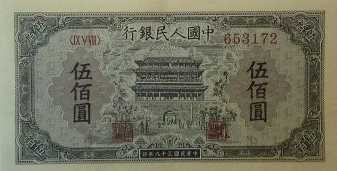 第一套人民币整套拍卖价达620万元,其中"瞻德城"伍佰圆单张成交价212.75万元(PMG 53EPQ)