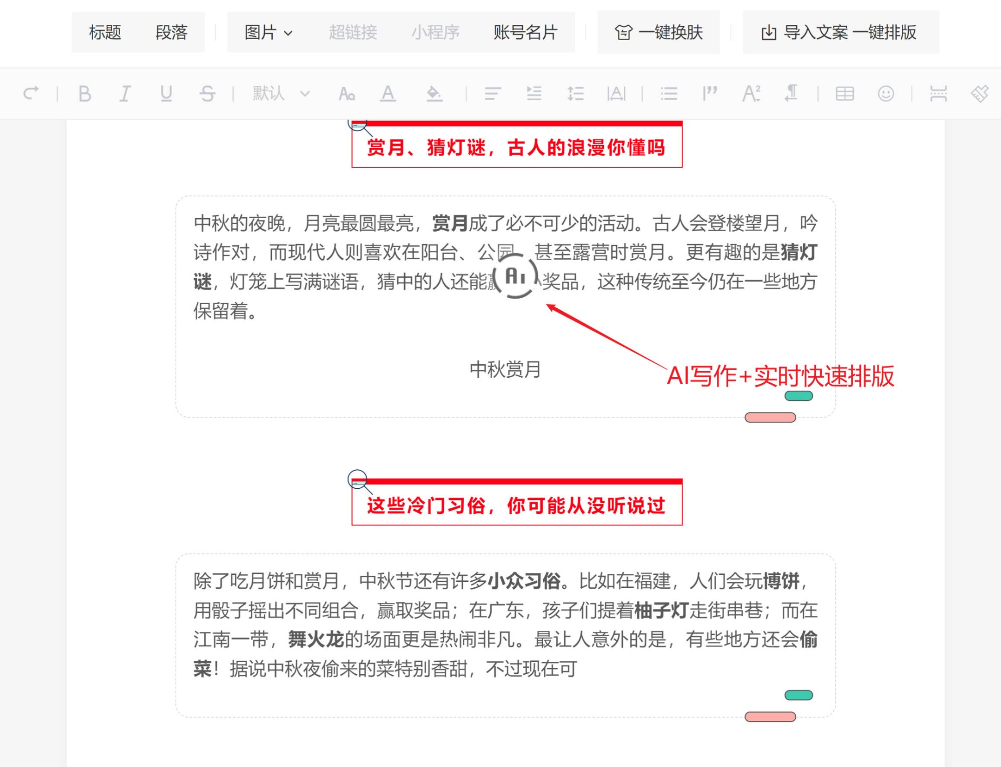 3.2 AI排版与内容装修:一键秒排,专业级效果