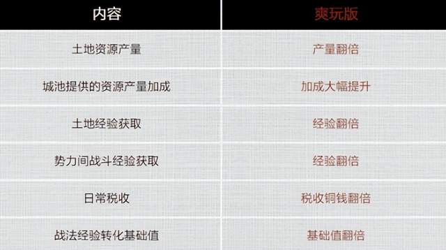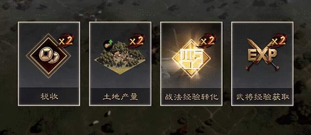 这仅仅是个开始,只要是正常开荒打地,所获得的资源,包括土地产量、战斗经验、战法经验转化和日常税收,以及势力间的战斗,全部翻倍!