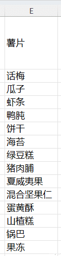 从下图 1 的 A 列中扣除 C 列的零食,然后将剩余的零食按行拆分。
