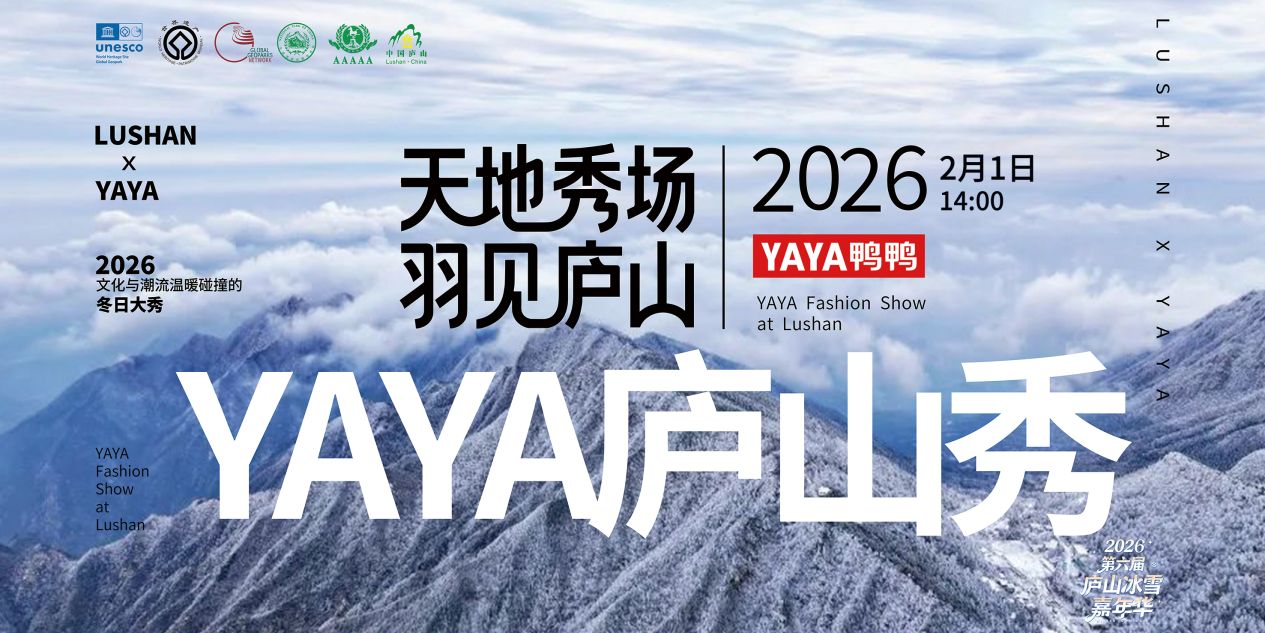 据悉,此次YAYA鸭鸭“天地秀场”是鸭鸭羽绒服开年重点策划的品牌推广活动。鸭鸭设计团队从唐代著名诗人李白的《望庐山瀑布》等诗词名篇中提取灵感,将庐山冬季的诗意雪景与鸭鸭品牌的温暖时尚结合,为此次大秀现场打造出诗画般的梦幻情境。
