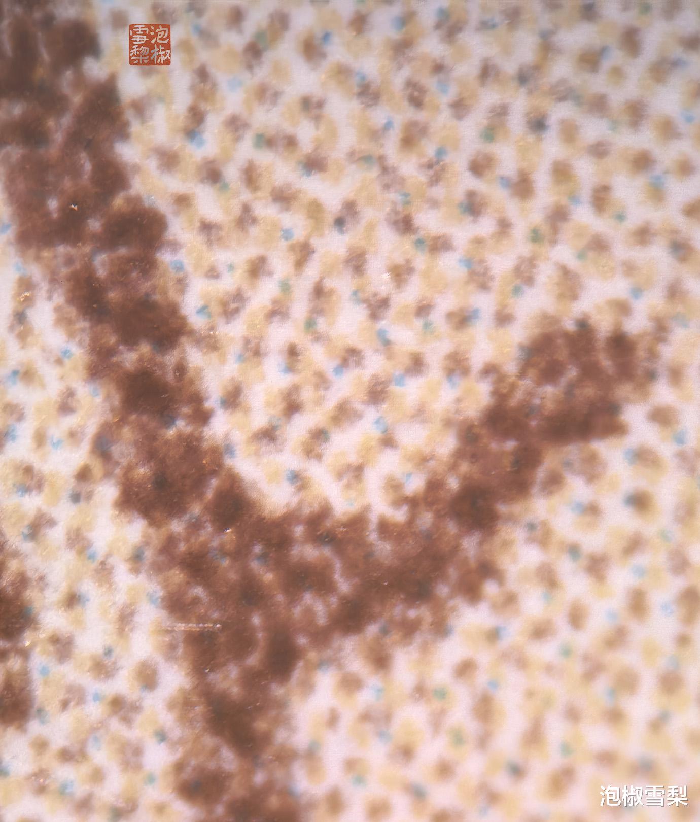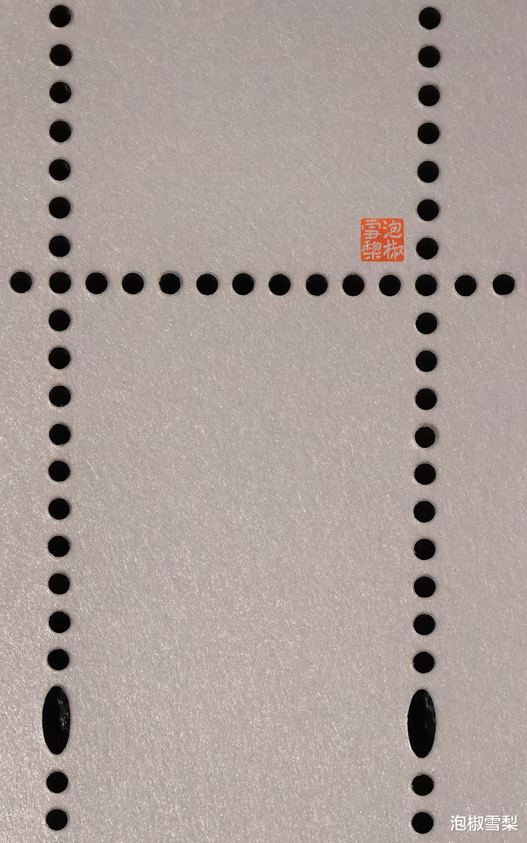 齿孔裁切干净整齐,正面反面均没有纸屑和背胶残余,显微镜下齿孔也较为完整,仅有少量纸张纤维。