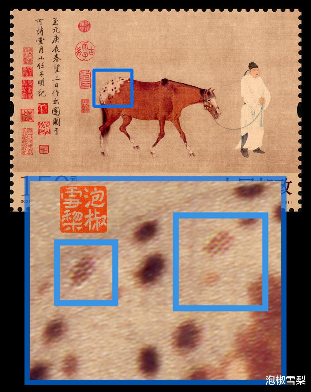 邮票颜色古朴典雅,高精度六色胶版展现了原画的风貌,印刷非常细腻,纸张与油墨贴合度高,邮票表面光亮平整,质量还是过关的。