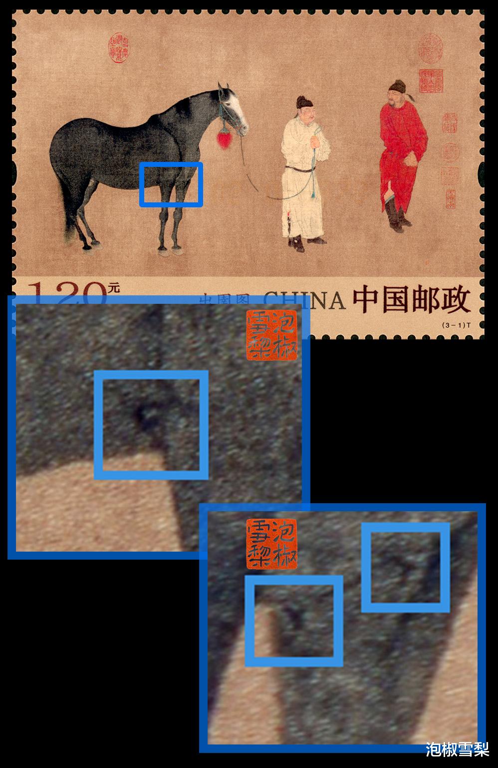 从印刷上看,北京邮票厂是下了功夫的,印刷细节以及齿孔都处理得非常到位,也许是有了河南厂这个无齿版竞争对手,有齿邮票的质量有了质的提升,甚至连套色不准也修正得极为微小,不仔细观察甚至无法发现。