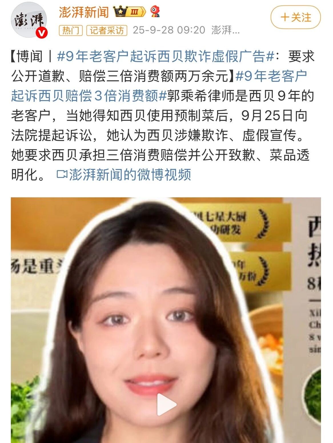 目前已经有律师顾客因西贝涉嫌欺诈、虚假宣传,向法院提起诉讼,要求三倍赔偿并公开致歉。
