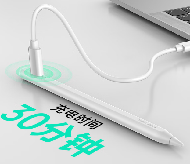 这款电容笔笔身为白色磨砂铝合金材质,单笔重量约在13g,配合哑光铝合金材质和粗细刚好的笔杆,握感比较轻盈细腻,握持体验感还不错。并且它具备磁力吸附的功能,只需将笔靠近ipad即可吸附,方便日常随身携带。在书写方面,它搭配了pom笔尖,有一定的阻尼感,日常书写不会出现断触的情况,但它的反应速度一般,在快速书写的情况下容易出现延迟的现象。在续航方面,它支持Type - C有线充电,约在30min充满的情况下续航可达12h,续航表现还不错,适合有长时间使用需求的用户。