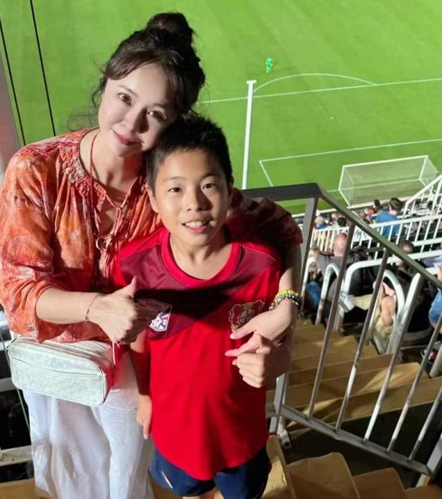 演员杨若兮自从淡出荧幕后,几乎将大部分精力放在了家庭上,然而和很多明星家庭一样, 杨若兮和老公连奕名对儿子的兴趣培养也非常重视,如今 1 0 岁的福宝,不但继承了爸爸的身高优势,还对足球产生了浓厚的兴趣。
