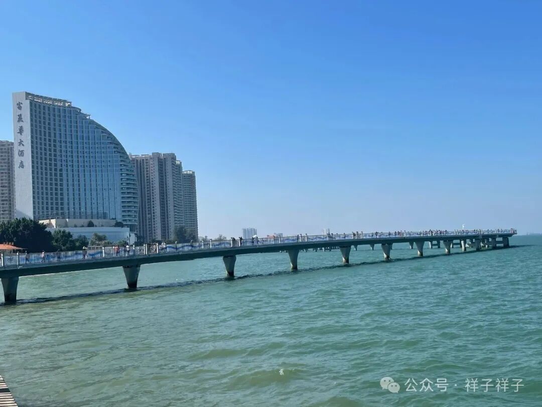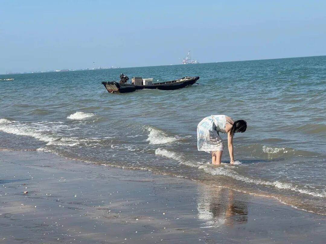 北海第3天上了涠洲岛,并在岛上住宿一晚,返程后入住北海站附近的希尓顿欢朋酒店,次日气温达26度,换上短袖薄裤,出门较晚,到达北海金滩,游人比银滩少了很多,显得清静一些。