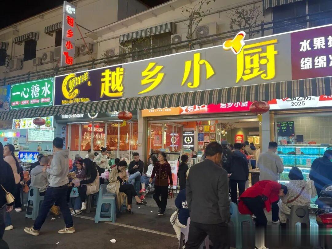 晚上去了侨港风情街进餐,这里美食众多,夜市超级热闹,各种越南风味小吃、海鲜大排档,逛街吃喝特别方便,不少摊点还排起了长队。吃了点炸虾饼、越南春卷、海鲜粥、炒河粉,有些油腻吃不惯,主要以逛为主!!