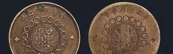 “军政府造四川铜币”是辛亥革命时期的产物。1911年12月发生“成都兵变”,以尹昌衡、罗纶为正副都督的四川军政府取代了成立仅12天的大汉四川军政府。民国元年(1912年)4月,四川成都造币厂奉四川军政府之命,开模铸造“军政府造四川铜币”(也称“汉”字铜元)。图中四川铜币正反两面压模相同,反正倒置,实属万中无一。