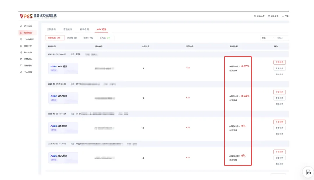 这款AI工具在降重时会着重保留论文的专业性,通过语义重组、专业术语精准替换等方式,避免出现口语化表述或散文化内容,确保修改后的文字仍符合学术写作的严谨风格。同时提供人工精修服务与论文查重报告,报告中会清晰标注重复率分布、重复段落来源,帮用户明确修改方向,最终保证三类论文一次性通过学术检测,彻底规避学术不端风险,让AI生成论文既高效又合规。