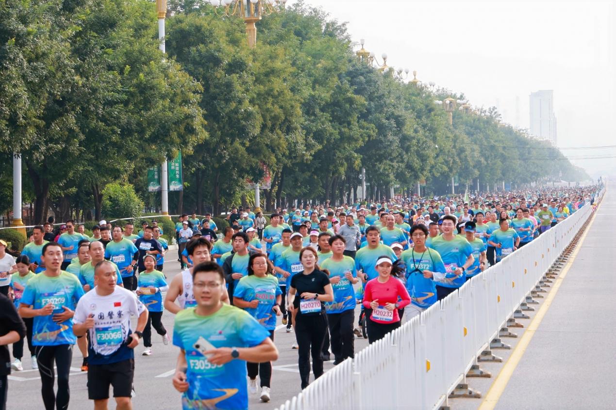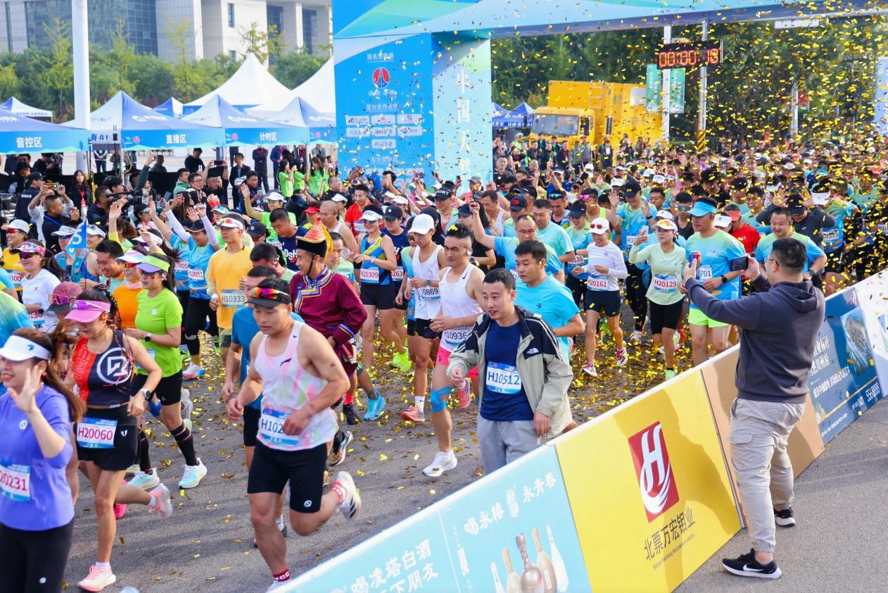 伴随比赛发令枪响,参加半马和欢乐跑的3000名选手,同时冲出起跑线,展开激烈角逐,并在比赛中享受运动快乐、感受北票魅力。