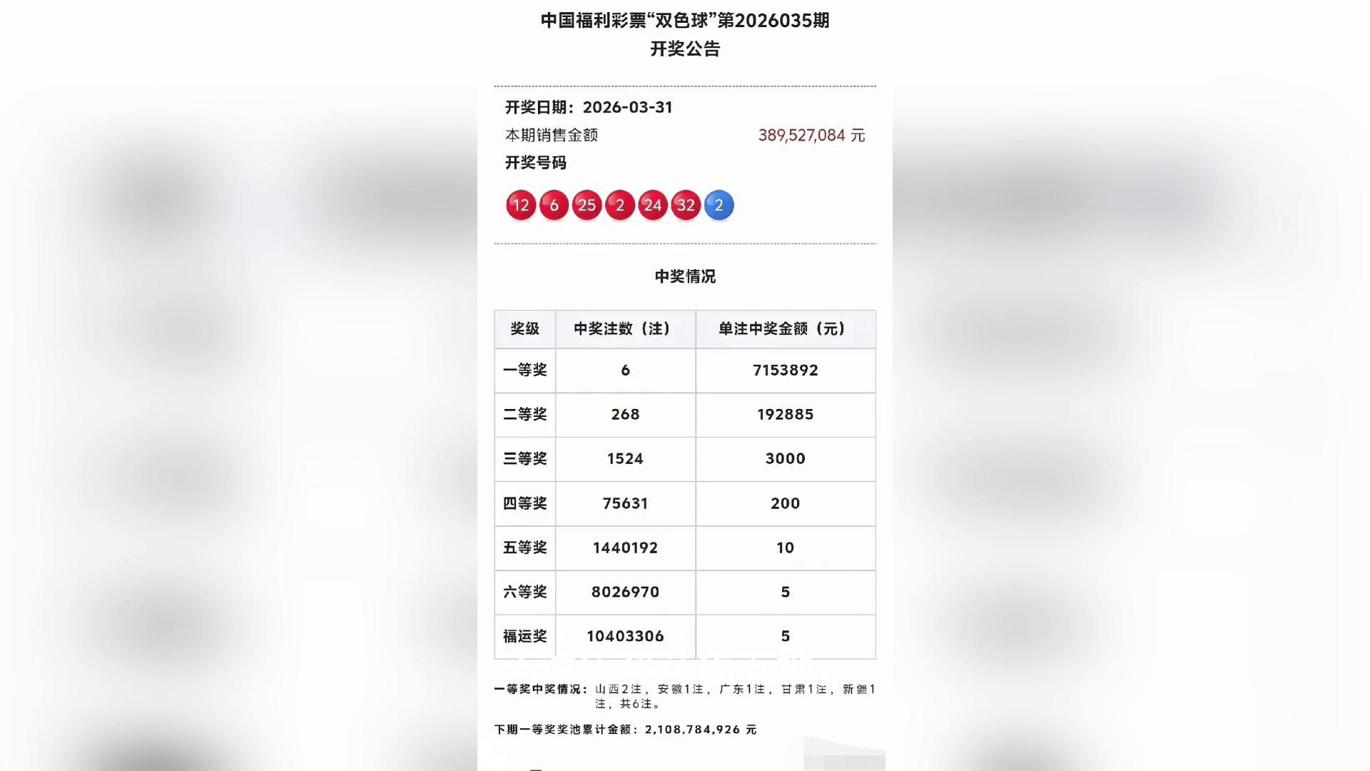 六注头奖花落五地,其中山西斩获两注,成为本期中奖最多省份。安徽、广东、甘肃、新疆各收获一注,南北多地共享幸运。若山西两注为同一彩民斩获,可独得超一千四百三十万元奖金,幸运值拉满。