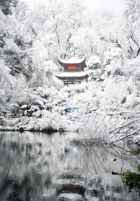 此行的首个焦点,自然是“停车坐爱枫林晚”的爱晚亭。当那座重檐八柱的朱红亭阁出现在眼前时,四周的景致已渲染到了极致。亭子被层层枫树环绕,此时枫叶正红得如火如荼,深浅不一,从绯红到暗红,夹杂着未褪尽的黄与绿,倒映在亭下的池塘中,色彩斑斓得令人屏息。亭中坐着休息的游人,或拍照,或静静观赏。遥想当年杜牧在此吟咏,毛泽东青年时代在此畅游,小小一亭,竟汇聚了千年的诗情与近代的风云。在此小坐片刻,看红叶随风缓缓飘落,时光仿佛在秋色中凝固。