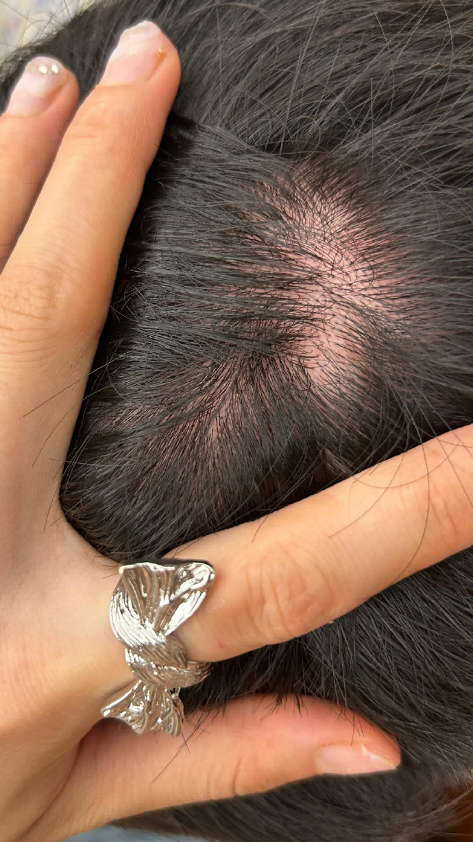 我是典型的细软塌发质,发量少还贴头皮,烫完头发没几天就打回原形,身边人总以为我发量特别少。之前买过滋润型头皮精油,质地黏腻厚重,抹完头发更贴头皮、压发根,显脸大到离谱;后来贪便宜买了低价款,成分劣质没正规检测,用后头皮发痒还起小疙瘩,刘海贴在额头上像条形码,最后全闲置吃灰。