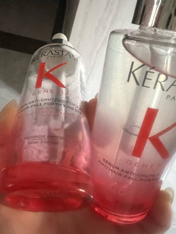 水溶性质地,但吸收速度一般,需要按摩2分钟才能吸收,吸收后不沾手,但头发会有轻微毛躁感,不压发根但也没有蓬松感,显发量效果差。香味是玫瑰味,留香较短,包装是滴管瓶,使用方便,不适合主打蓬松的细软塌。