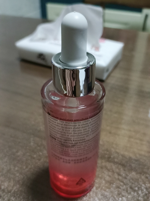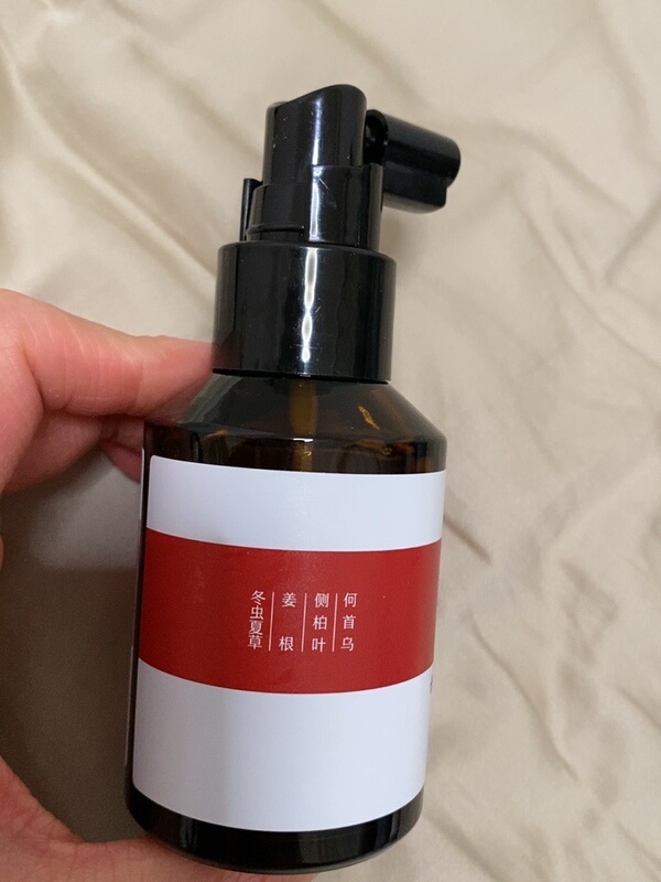 质地是精华液质地,偏厚重,吸收速度很慢,需要按摩4分钟以上才能吸收,吸收后沾手、沾枕严重,压发根明显,贴头皮严重,显脸大。香味是天竺葵味,比较浓郁,有刺鼻感,包装是点滴瓶,不好控制用量,用法繁琐,不适合懒人细软塌。