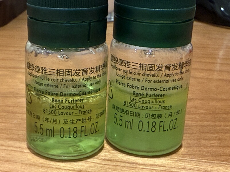 质地是水、油和粉末三种不同质地混合状,使用前需要摇匀,吸收速度较慢,需要按摩3-5分钟才能完全吸收,吸收后有轻微黏腻感,容易贴头皮。香味是薰衣草味,比较清淡,但留香很短,包装是滴管瓶,安瓶设计,使用起来很麻烦,不适合我们中老年人群操作,长期养护的性价比很低。