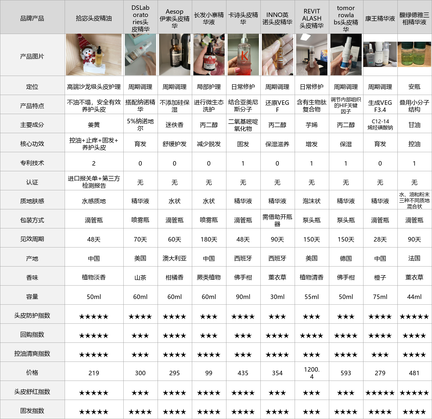 为了让大家快速看清这10款头皮精油的核心差异,我整理了一份实测参数对比表,所有数据都是这1个月我自己实测出来的,不掺假、不虚标,重点看质地、吸收速度、成分安全性、防脱效果这些关键指标,帮大家快速初步筛选。