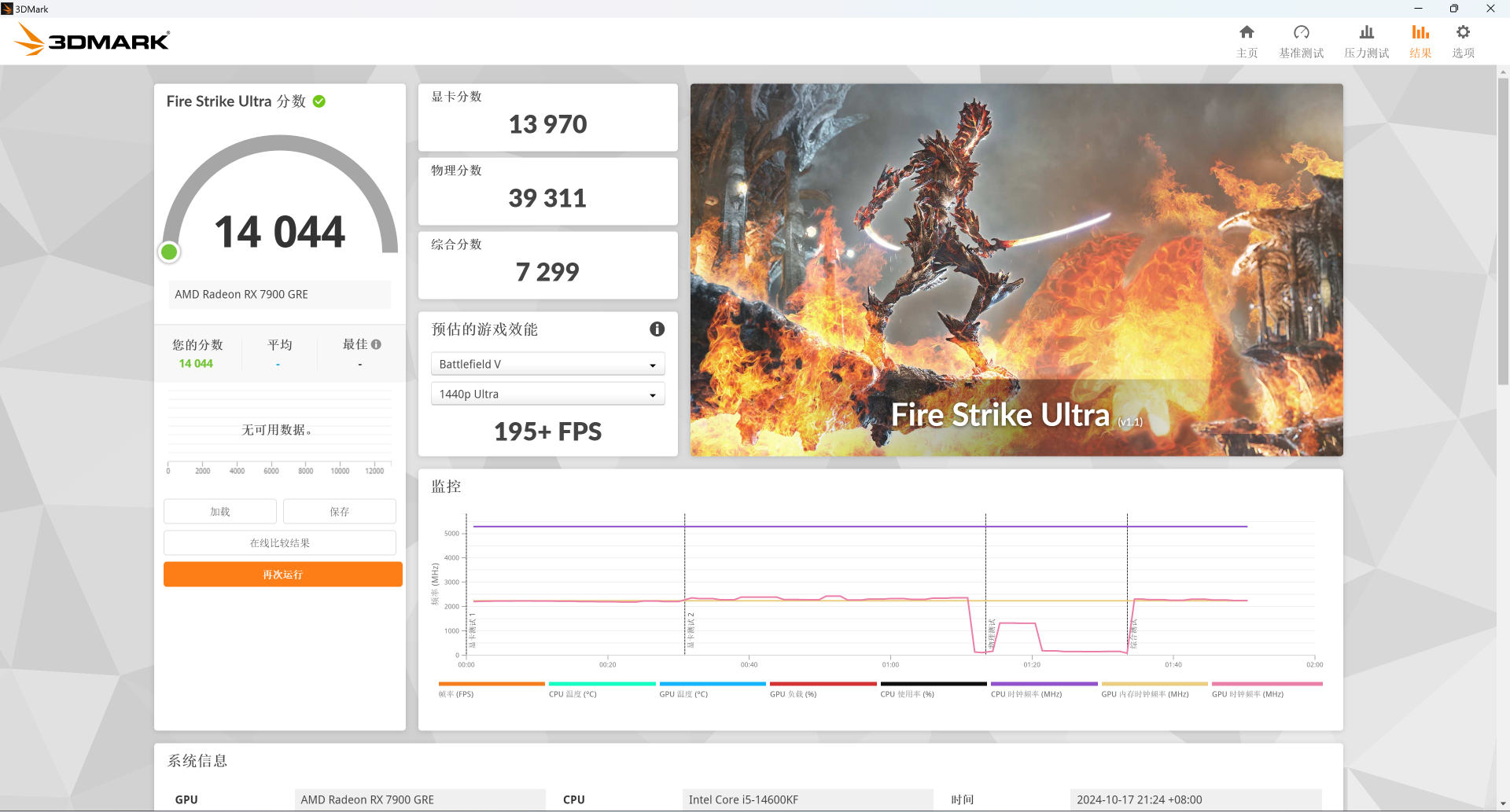 FSU的结果也差不多,14600KF的CPU分数依然要比9600X高不少,但测出来的显卡分数依然差不多。游戏测试均为4K分辨率,有预设就是预设最高。