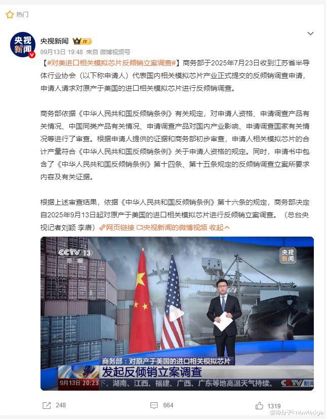 老美想卡我们的脖子,没想到我们来了一次正面反击!你制裁我们的半导体企业?行,咱们也对你们的模拟芯片发起反倾销调查。