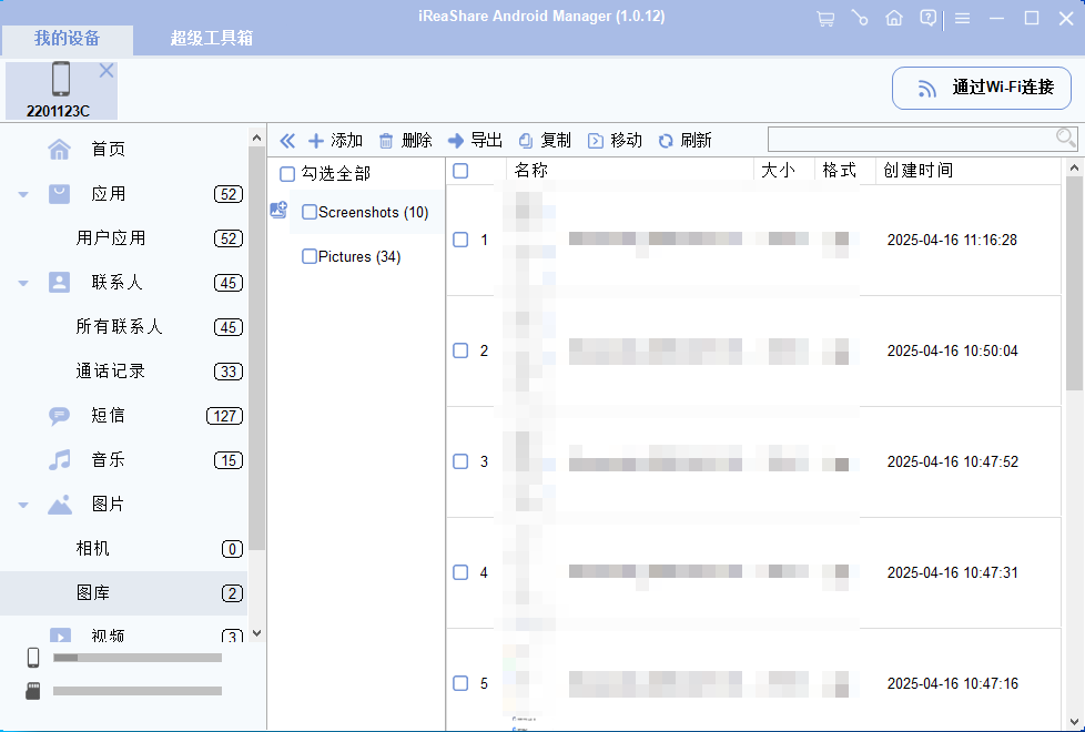 如果您更喜欢井然有序、易于使用的照片管理方式,iReaShare Android Manager是一个不错的选择。它可以帮助您轻松地将文件(包括照片)从 Android 设备传输到电脑或外部 U 盘。您还可以传输联系人、短信、应用、通话记录、音乐、视频等。传输过程中不会造成任何质量损失。