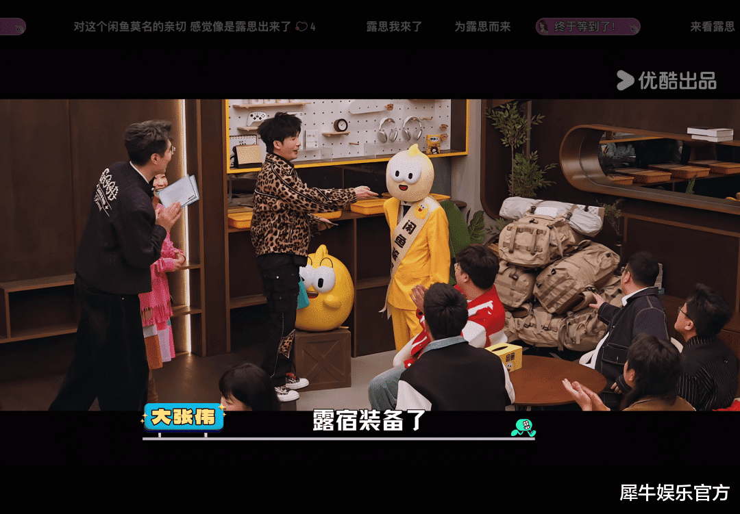鱼头人在节目“牵手”代言人赵露思出现,等于把闲鱼社区人格化、具象化了。这只魔性吉祥物坐在评委席身后,被段子冷到时会捂脸、被戳中时会疯狂拍桌、心软时会给选手送露营装备,俨然成功融入脱口秀play中的一环,这种“深度冠名”彰显了当下综艺金主直接下场内容共创的高级营销趋势。